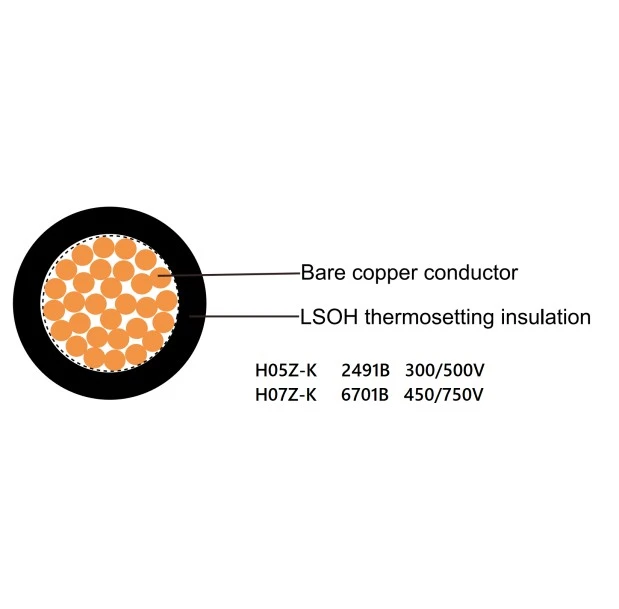 الفولطية المقدرة: H07Z-U، H07Z-R (6491B)، H07Z-K (6701B)، 450/750 فولت